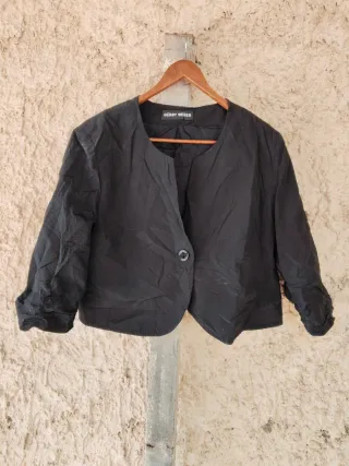 Elegante chaqueta corta de la marca Gerry Weber. Medida de axila a axila 52 cm - Diseño moderno y versátil. - Cierre de un botón. - Mangas tres cuartos. - Cuello redondo.