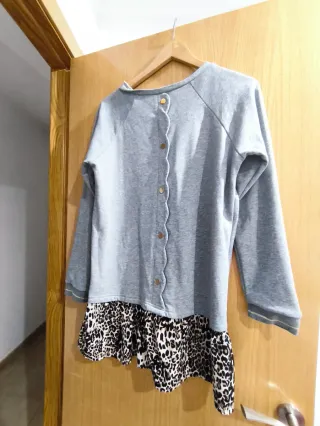 Sudadera cómoda con un diseño moderno. - Parte superior gris de manga larga. - Parte inferior con estampado de leopardo. - Bajo asimétrico.