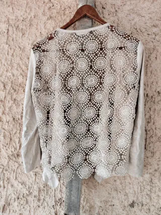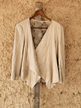 Elegante chaqueta blanca de la marca ONLY, con un detalle de encaje en la espalda. - Diseño cruzado. - Tejido ligero. - Acabado con puntilla de encaje.