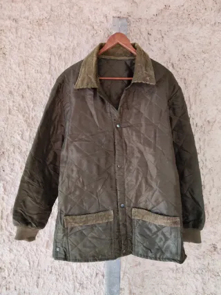Chaqueta acolchada de estilo utilitario para hombre. Lleva un unos puntos rotos ( hay foto de ello) - Diseño acolchado con rombos. - Cuello de pana. - Bolsillos delanteros con solapa de pana. - Puños elásticos.