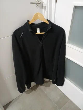 Chaqueta de tejido polar de la marca Quechua. Es una prenda cómoda y versátil. - Cierre completo con cremallera. - Cuello alto. - Logo de la marca bordado en la manga. Vestido negro Jersey rosa manga corta lurex Chaqueta oberside gris Camiseta negra sin mangas muy elegante