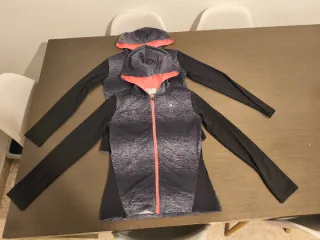 Pack de dos jerséis deportivos con capucha y cremallera. - Diseño jaspeado en la parte frontal. - Mangas largas de color negro. - Forro interior de la capucha en color rosa.