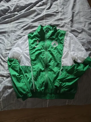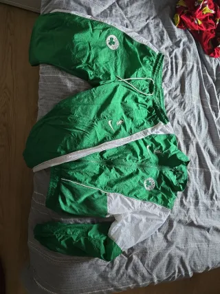 Conjunto chándal de Boston Celtics Nike en perfecto estado. - Chaqueta con cierre de cremallera. - Pantalón con cintura elástica y cordón. - Diseño con paneles blancos.