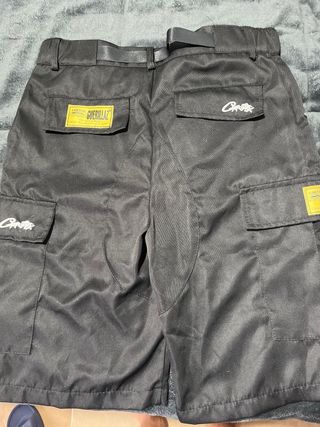 Pantalones cortos de estilo cargo en color negro. Cuentan con un cinturón ajustable. - Diseño con múltiples bolsillos. - Logo ovalado en la parte frontal.