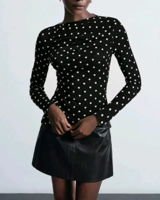Camiseta lunares cuello drapeado