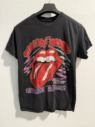 Camiseta negra de The Rolling Stones con el diseño de la gira Voodoo Lounge de 1994. Presenta el icónico logo de la lengua y los labios. - Diseño frontal de la gira Voodoo Lounge. - Estampado de la banda The Rolling Stones. - Manga corta.