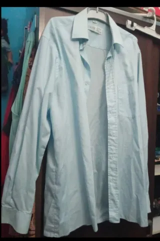 Camisa de vestir de manga larga. - Color azul claro. - Cuello camisero. - Cierre de botones.