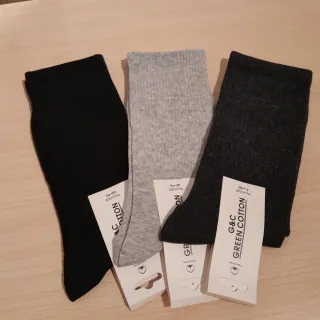 Pack de tres pares de calcetines altos para Hombre, 98%algodón y 2%elastán 🧦. Colores: negro, gris claro y gris oscuro. Talla 40/46. Precio == 5 euros. - Marca: G&C GREEN COTTON - Talla: 40-46 - Colores: negro y gris