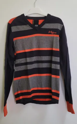 Jersey Jack & Jones Rayas Naranja Gris