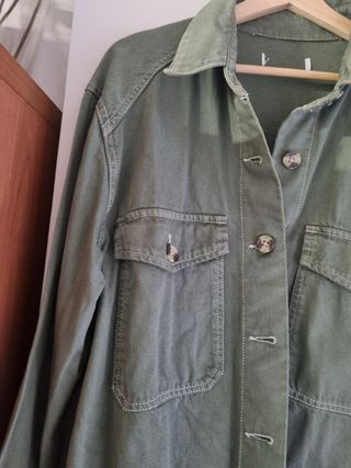 Sobrecamisa de estilo denim en un tono verde oliva. Perfecta para añadir un toque casual a tu atuendo. - Diseño de sobrecamisa. - Acabado en tejido denim.