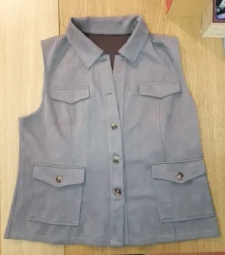Chaleco de mujer de color gris, de ante sintético, es suave. Usado una sola vez, está como nuevo. Medidas aprox.: Ancho 56,50 cm Largo 63 cm NO SE HACE ENTREGA EN PERSONA, GRACIAS
