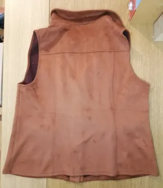 Chaleco de mujer de color marron, de ante sintético, es suave. Usado una sola vez, está como nuevo. Medidas aprox.: Ancho 56 cm Largo 63 cm NO SE HACE ENTREGA EN PERSONA, GRACIAS