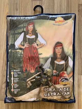 Disfraz pirata de ultramar marca GIURCA, talla única. Incluye corsé, camisa, falda, cinta cabeza y llavero de calavera. Prácticamente nuevo, usado en una sola ocasión.