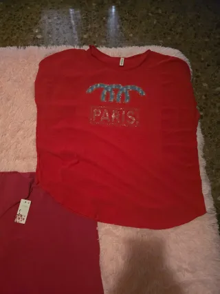 Lote de ropa de tienda. - Variedad de prendas en tonos rosas y rojos. - Ideal para revendedores o para renovar tu armario.