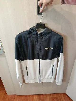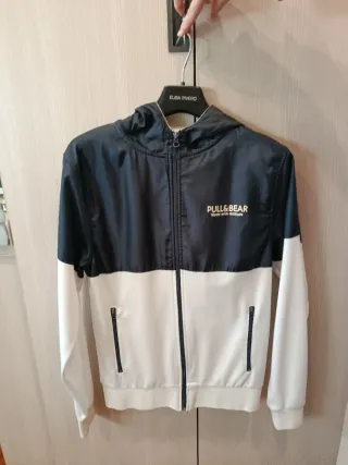 Chaqueta deportiva con diseño bicolor. - Parte superior en azul marino. - Parte inferior y mangas en blanco. - Cremallera frontal. - Bolsillos laterales con cremallera. Si compras las 4 de mi perfil a 40 las 4