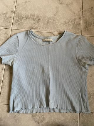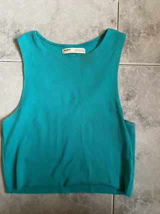 Top de canalé en un llamativo color celeste. Su diseño sin mangas lo hace ideal para climas cálidos o para usar en capas. - Tejido elástico y acanalado. - Corte moderno y favorecedor.
