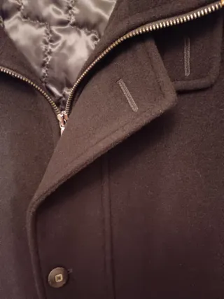 Abrigo de paño con un diseño clásico y elegante. Nueva con etiquetado - Material de paño suave. - Cierre de cremallera. - Cuello alto.