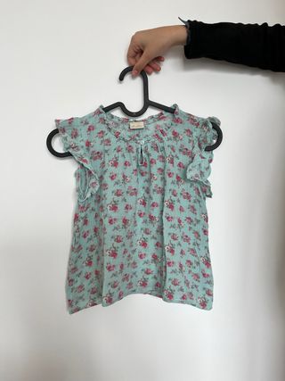 Blusa con un bonito estampado floral. - Diseño con cuello redondo. - Mangas cortas con volantes. - Cierre de botón en la parte delantera.