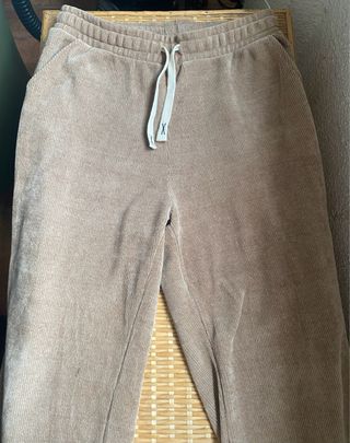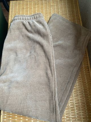 Pantalones cómodos de pana aterciopelada en color beige. - Cintura elástica con cordón. - Bolsillos laterales. - Tejido de pana acanalada. - Bajos anchos