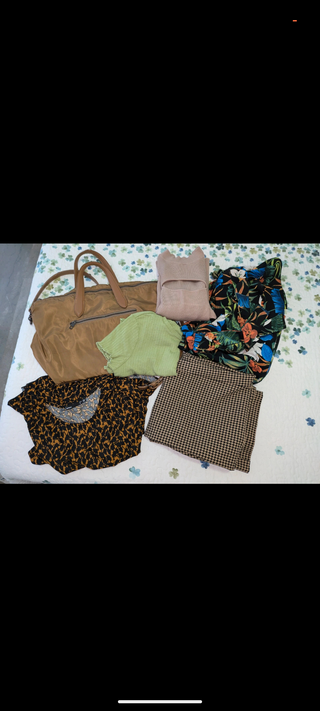Pack de 6 prendas de ropa. Bolso, vestidos, tops
