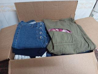 Ropa de todo tipo (vaqueros, camisetas, pijamas, toallas, conjuntos, tops, shorts...) Puede haber ropa con algún desperfecto Marcas variadas (Mango, Stradivarius, Zara, Bershka, Lefties, HyM) Las tallas pueden variar desde la XS/XL Para más información, escríbeme