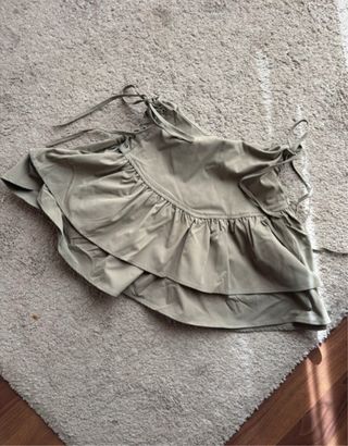 Blusa fluida de dos capas con un diseño sin mangas. - Detalle de pedrería plateada en los bordes. - Cierre de lazo en la nuca. - Nuevo, sin usar. No tiene desperfectos - Dos capas - Estilo Y2k - Buena calidad. Fabricado en Francia