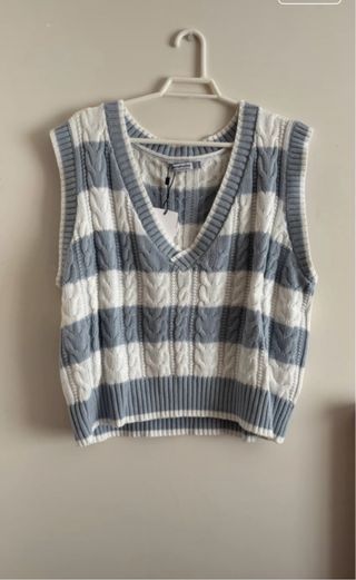 Chaleco de punto con diseño de rayas y trenzado. - Cuello en pico. - Tejido de punto. - Diseño a rayas.