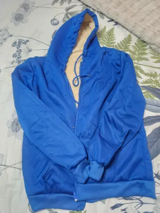 Sudadera con capucha y forro interior de borreguito. - Cierre de cremallera. - Bolsillos delanteros. - Cordones ajustables en la capucha. Está sin estrenar.