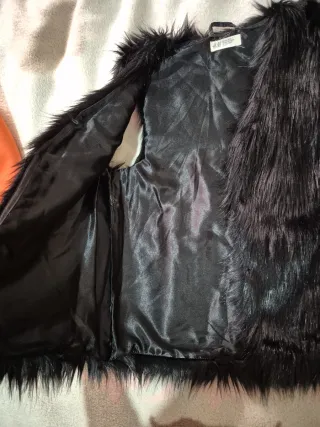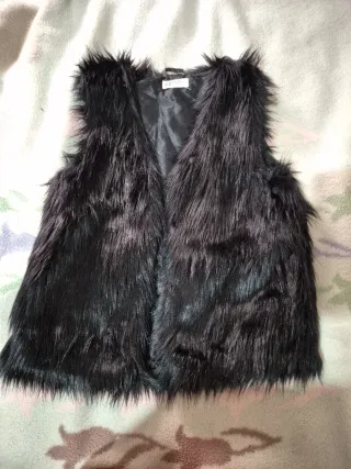 Chaleco de pelo sintético negro de H&M. - Diseño sin mangas. - Tacto suave y cálido. - Ideal para añadir un toque especial a cualquier atuendo.