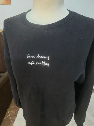 Sudadera negra con un diseño moderno y un mensaje inspirador. - Cuello redondo. - Manga larga. - Estampado de texto blanco en el pecho.