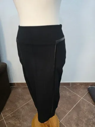 Falda larga con cremallera trasera y decoracion de polipiel en laterales