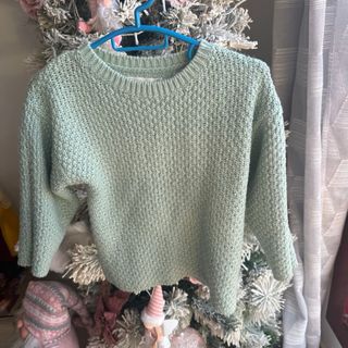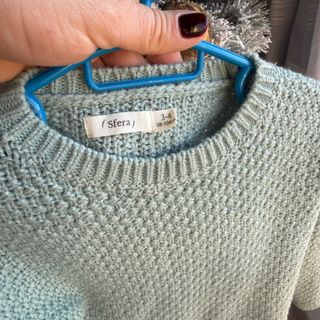 Precioso suéter de punto para niña. - Color verde azulado. - Talla 3-4 años (98-104 cm).