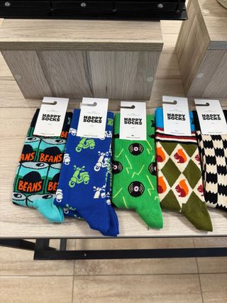 Pack de calcetines Happy Shocks y Jorigu. Tengo: 57 pares de Jorigu 12 pares de Happy Shock Todos son de talla de Hombre (40-45 o 41-46). Su precio de venta en tienda son de 12€ los Happy Shocks y 8,95€ los Jorigu