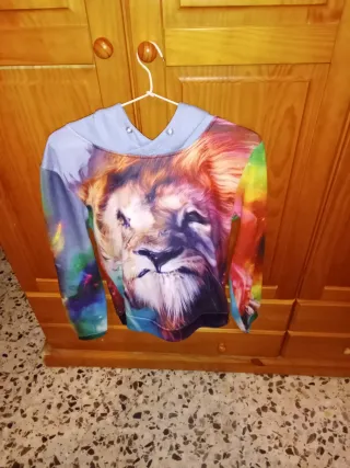 (Solo por 5€)(Le falta el cordón del gorro,ver fotos)Sudadera invierno para chico con un llamativo estampado de león y diseño espacial. - Diseño frontal de león. - Mangas con estampado galáctico. - Capucha integrada y bolsillos,talla M ver etiqueta.Si te interesa te la envío por tan solo 5€ MIRA MI PERFIL - NO TE LO PUEDES PERDER 🤗