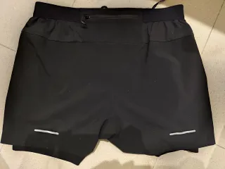 Pantalones cortos deportivos Asics de 5 pulgadas. Solo usado en 3 ocasiones. Talla grande - Diseño 2 en 1. - Cintura elástica con cordón. - Logo de Asics en la pierna.