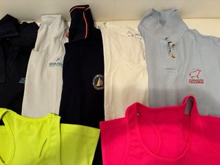 Conjunto de prendas deportivas variadas, incluyendo camisetas y polos. 12 prendas entre camisetas y polos y varias tallas entre M-S-L se venden todas juntas por solo 5€, están en buen estado - Variedad de colores disponibles. - Diseños para actividades deportivas.