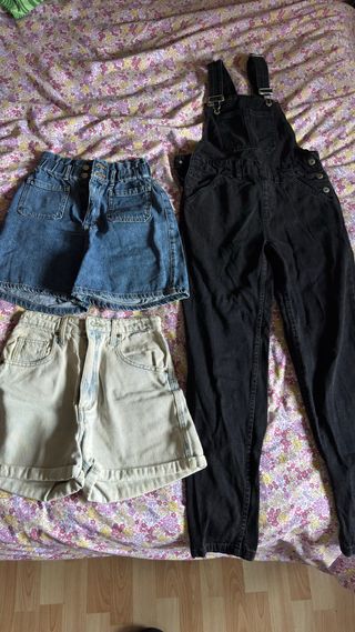 Pack de ropa variada prácticamente sin estrenar. Contiene: -4 camisas de cuadros -2 camisetas -9 pantalones vaqueros, desde dos clásicos azul oscuro y claro hasta varios de diferentes colores Se vende el pack completo, no piezas por separado. Abierto a negociar