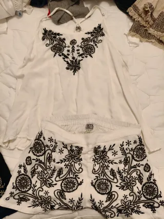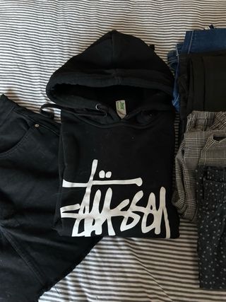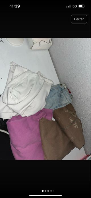 Se compone de 10 prendas, todas usadas por mi hija, algunas algo usadas, otras como nuevas y algunas incluso sin estrenar. Muchas de ellas de primeras marcas (Zara, Brandy Melville, Nicoli, etc). Precio de lote, NO VENDO POR SEPARADO