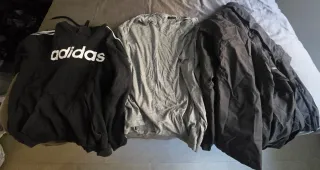 Lote ropa deportiva de varias marcas, hombre talla M. Cuatro sudaderas de Vans, Adidas..., cuatro pantalones, dos de ellos Adidas y seis camisetas varias marcas: Adidas, Nike etc. Otras sudaderas y camisetas de regalo.