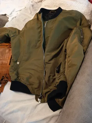 Chaqueta estilo bomber en color verde. - Cierre de cremallera. - Puños y cuello elásticos. - Bolsillos laterales.