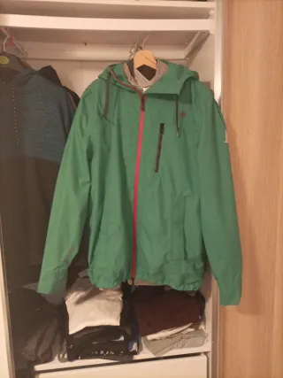 Chaqueta impermeable, cortavientos y transpirable de la marca First B en color verde. Para salidas en barco o simplemente para el día a día. - Diseño con capucha. - Ajustes cintura a través de los bolsillos. - Bolsillo con cremallera en el pecho. - Bolsillo para móvil y salida de auriculares. - Puños ajustables. -