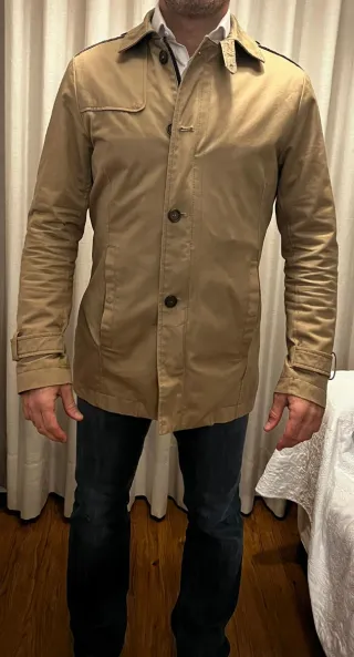 Chaquetón de hombre en color caramelo, ideal para un estilo casual. Talla 50. Muy nuevo - Diseño clásico. - Cierre frontal. - Bolsillos laterales.