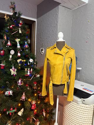 Chaqueta de estilo biker en color amarillo. - Material tipo ante. - Cierre de cremallera. - Cinturón con hebilla.