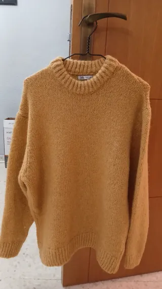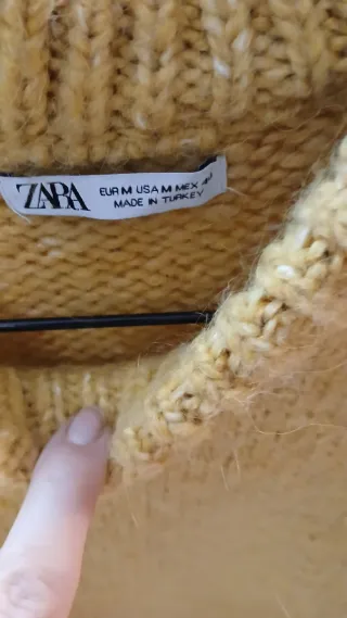 Jersey de punto de la marca Zara en color amarillo. - Cuello redondo. - Manga larga. - Bajo y puños de canalé.