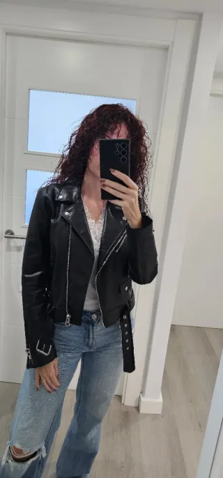 Cazadora Biker Zara Negra Talla M