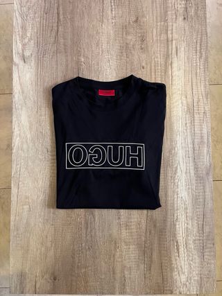 Camiseta negra Hugo Boss con logo invertido, talla M y en perfecto estado.