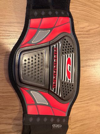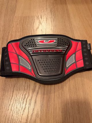 Faja lumbar diseñada para ofrecer soporte y protección. Cuenta con un diseño ergonómico y materiales resistentes. - Panel frontal con ventilación. - Cierre de velcro ajustable. - Detalles en rojo y gris.