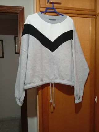 Sudadera gris y blanca con cordón