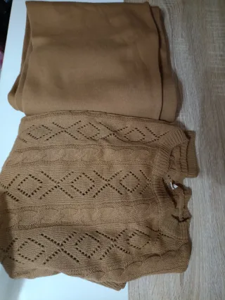 Conjunto de invierno de buena calidad. - Tejido de punto con diseño. - Color marrón.