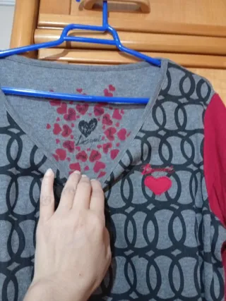 Camiseta de manga larga con un diseño original y llamativo. - Mangas de diferente estampado. - Detalle de corazones en la zona del cuello. - Puños y cuello en contraste.